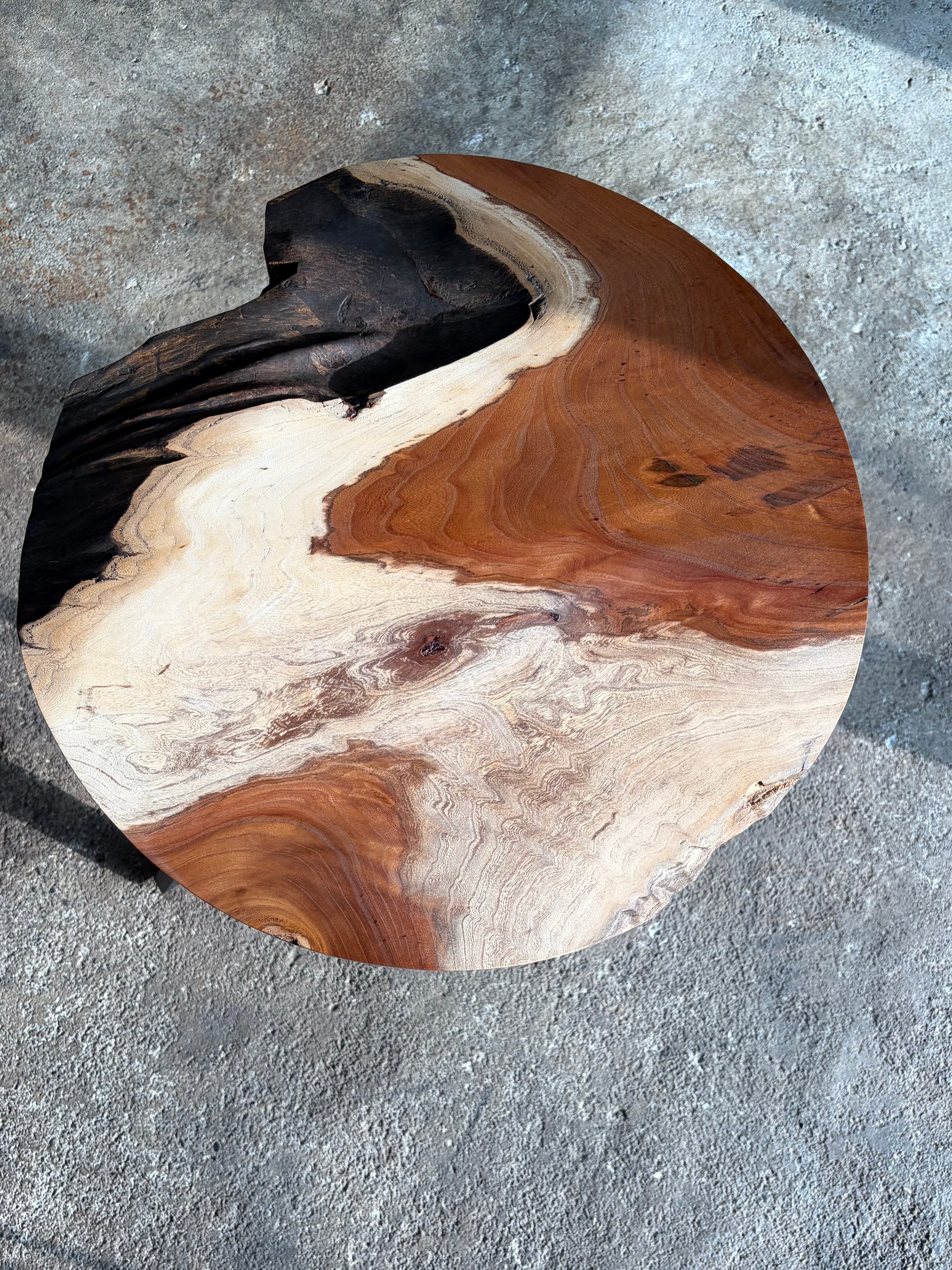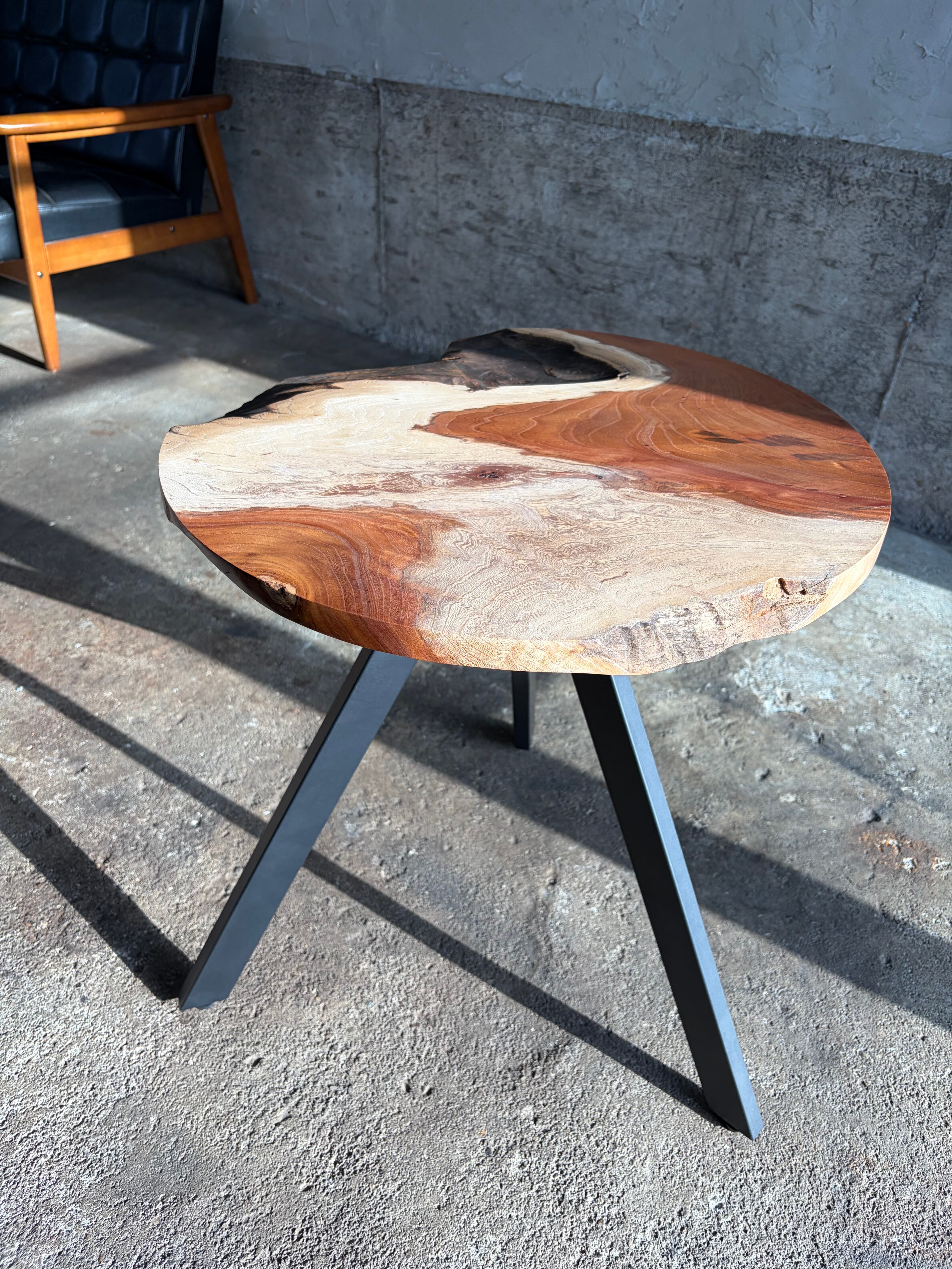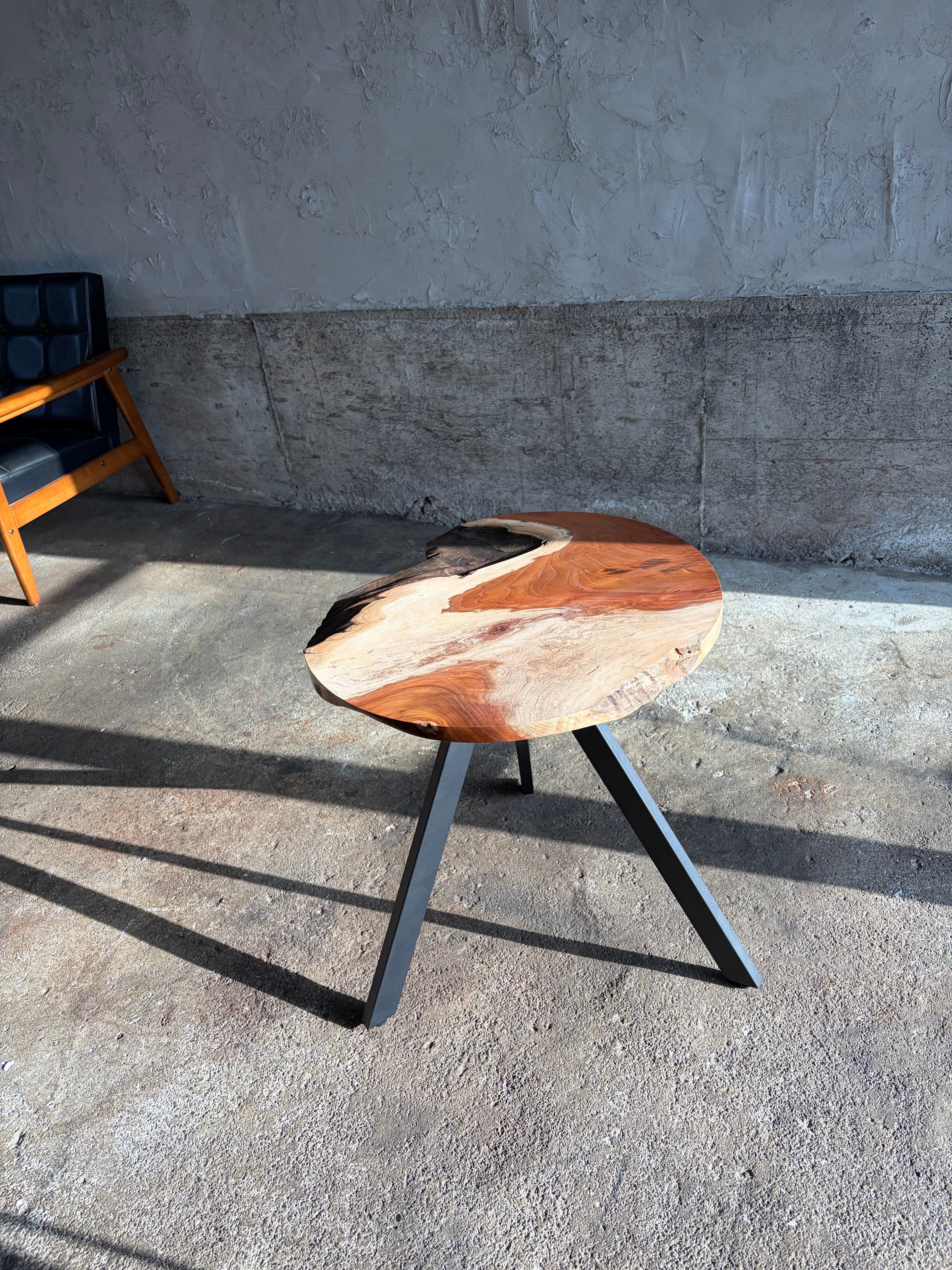 強い個性を持った欅の一枚板で製作した円形サイドテーブルです。