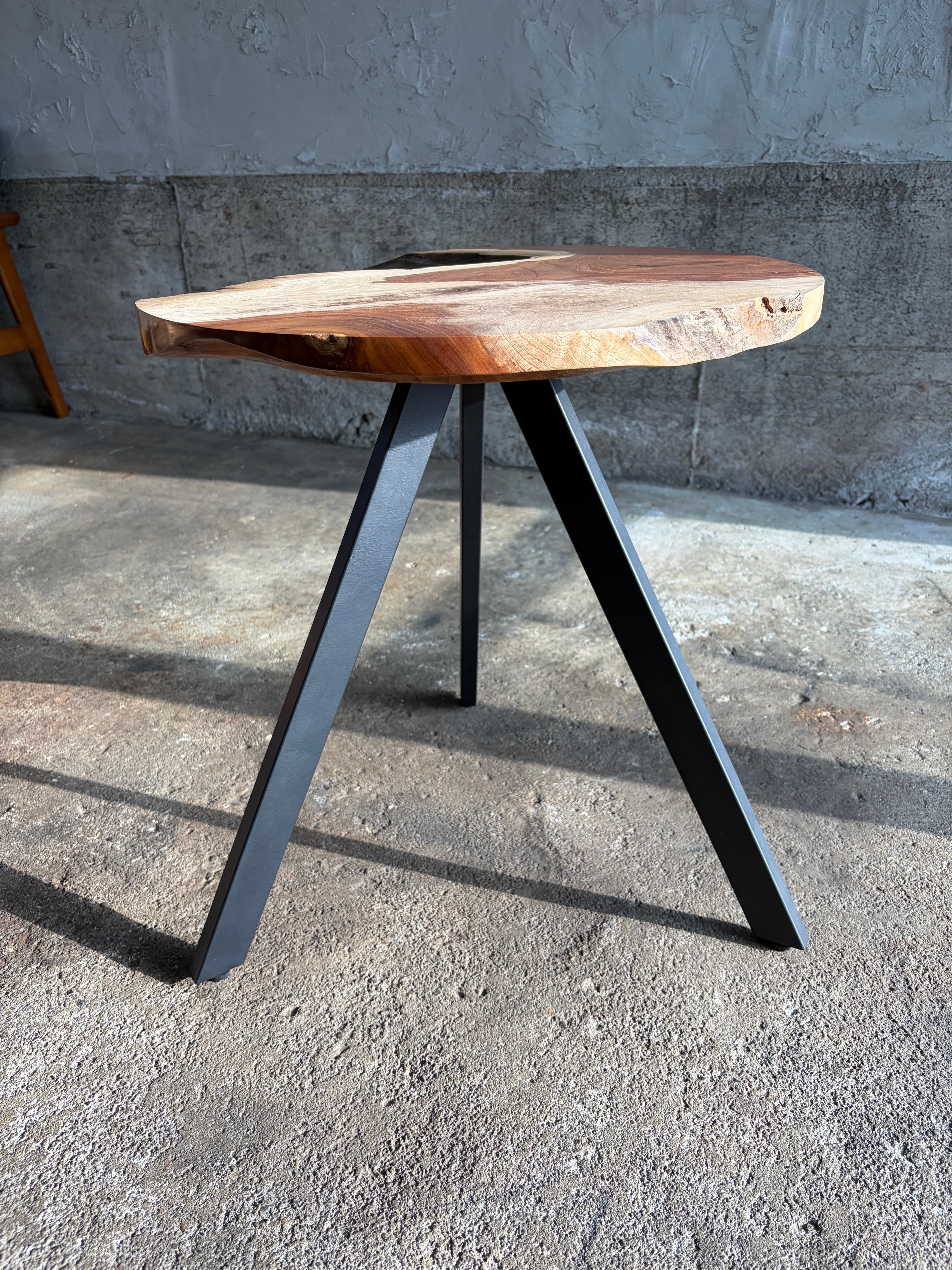 角度をつけた三本脚はどの方向からもテーブルトップにアクセスしやすく、そのスタイルは間違いなく空間を特別なものへと変化させます。