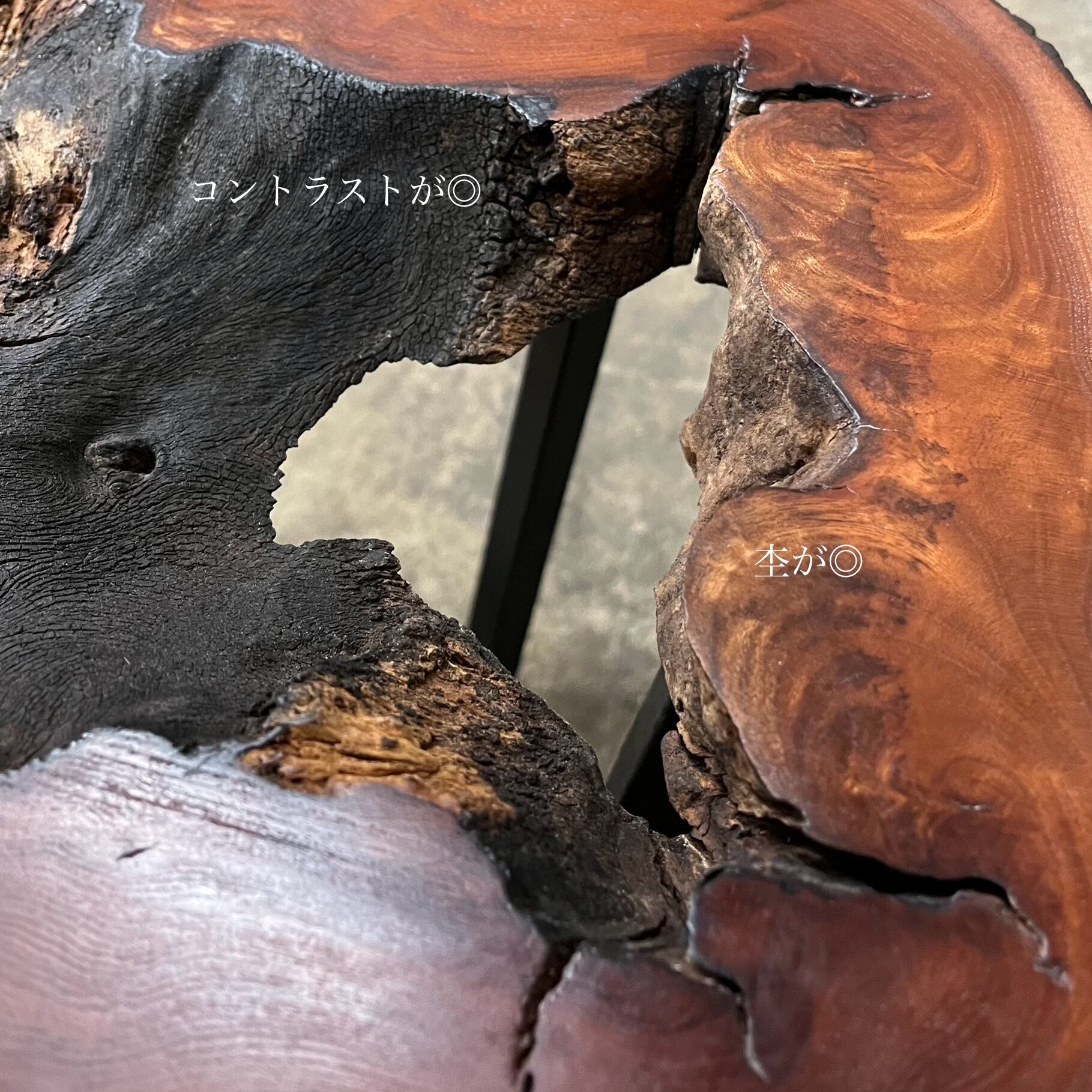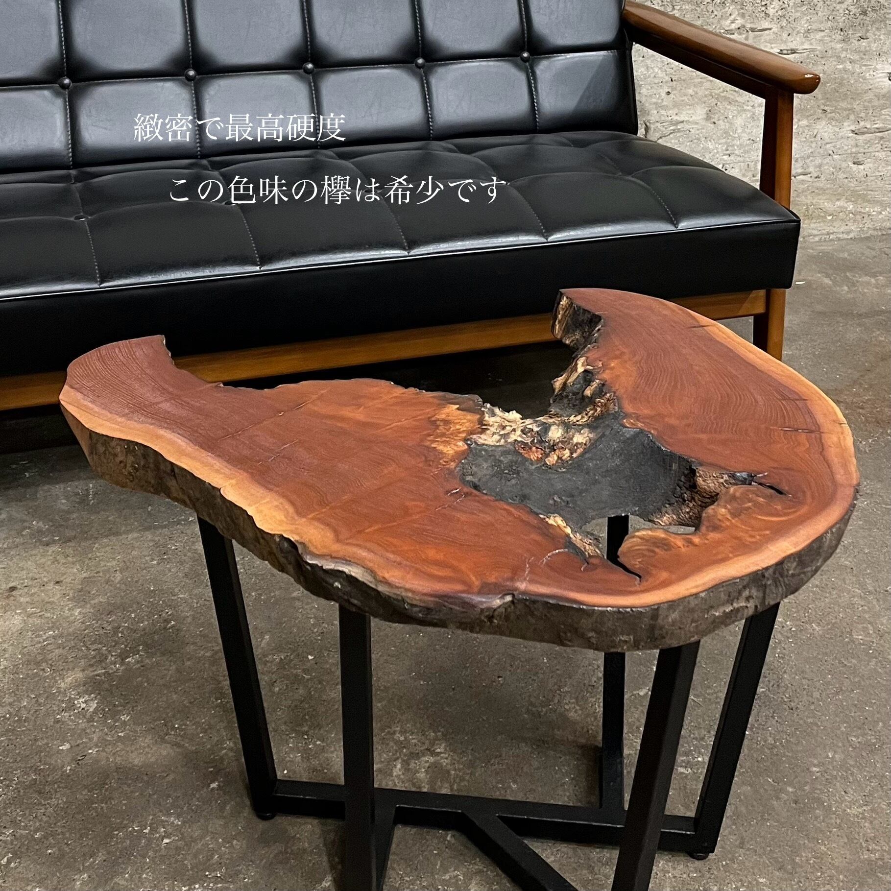 朽ちた感じを残した欅の一枚板ローテーブル